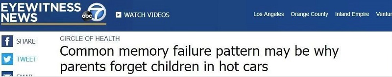 美国神经学家David Diamond 将家长将孩子遗忘的行为,解释为一种“记忆受损”。他表示,人在专注于思考一件事情时,其记忆会暂时受到抑制,我们会对车里的孩子失去记忆,而这种短暂的记忆缺失,却可能会造成一个家庭毁灭性的悲剧性后果。