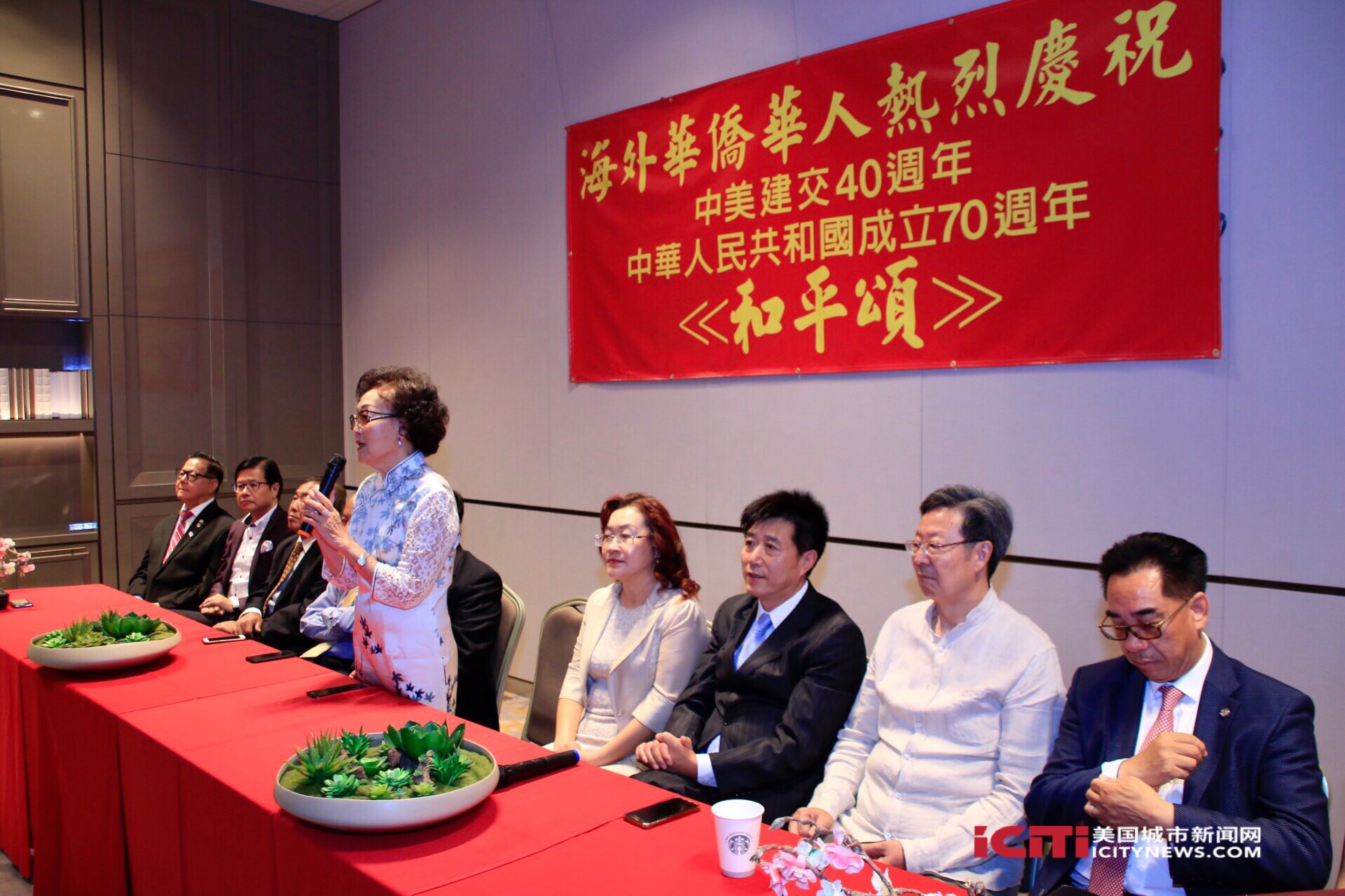8月4日,“美中建交40周年暨新中国成立70周年大型《和平颂》系列文化活动新闻发布会在圣盖博市举行,南加州众多侨团代表出席发布会。