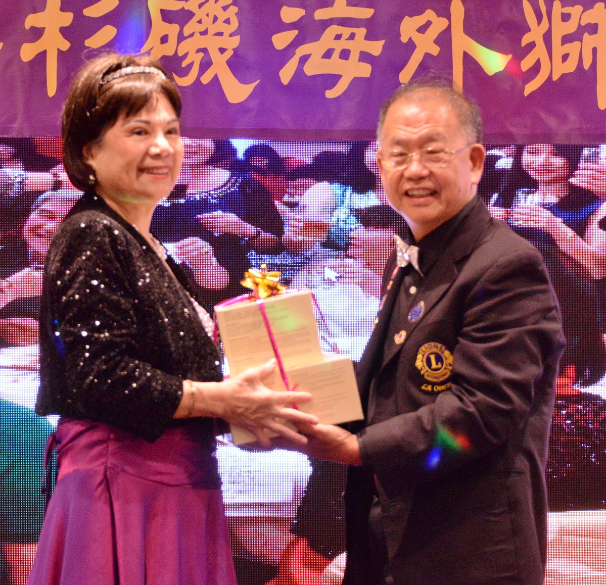 城市新闻8月17日圣盖博市报导,洛杉矶海外狮子会(Los Angeles Overseas Lions Club)在半岛海鲜大酒家举行洛杉矶海外狮子会新老新任会长交接典礼,刘日兴从卸任会长冯盈手中接过接力棒,成为洛杉矶海外狮子会新一届会长。蒙特利公园市市长梁侨汉、柔似蜜市市议员Sandra Armenta、圣盖博市市议员廖钦和、洛杉矶县政委员会代表、洛杉矶海外狮子会创会会长金雪伦、各大狮子会会长等近300人出席盛典。