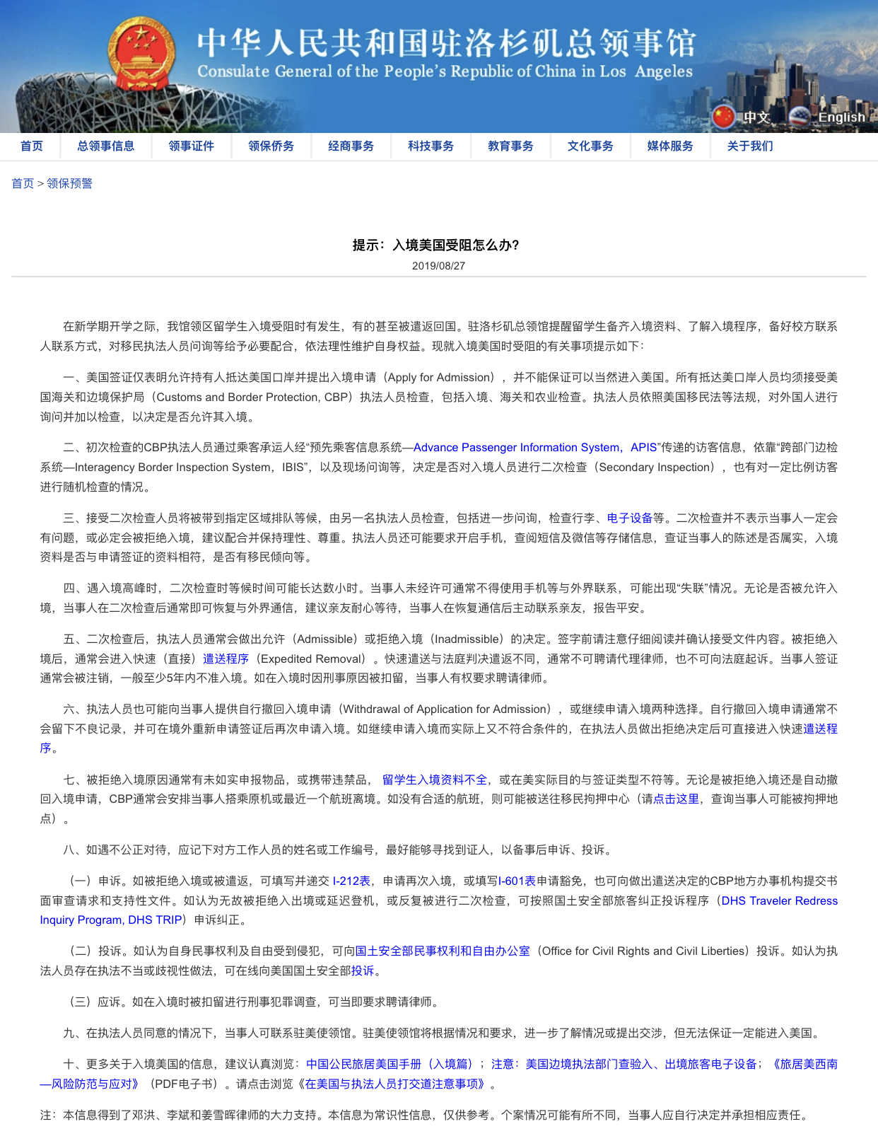 未经允许不得转载:城市新闻网icitynews » 驻洛杉矶总领事馆提示:入境美国受阻怎么办?