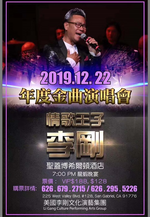 阔别二十载,歌迷翘首期盼的“情歌王子”,著名旅美歌唱家李刚,带着经典再度唱响洛杉矶!