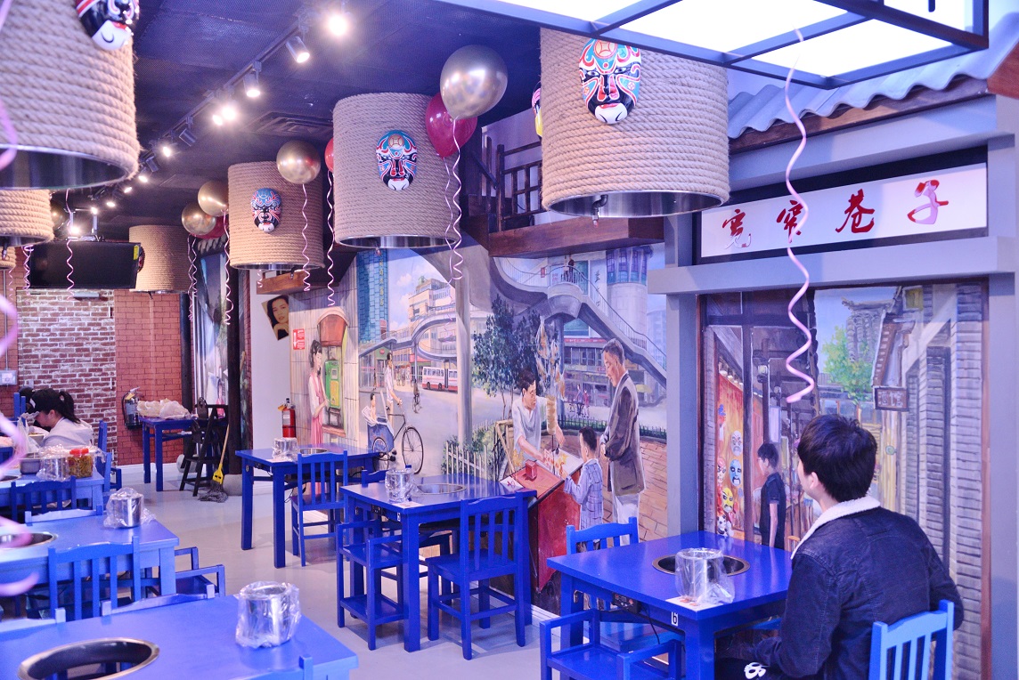 马路边边火锅串串餐厅轻松怀旧的环境,清一色宝石蓝的桌椅,仿佛穿越40年前成都某个巷子角落,富有年代感。好莱坞电影演员胡玲品尝马路边边后表示,马路边边火锅串串不仅美味可口,盆菜小吃种类多,应有尽有,可一饱口福。再说我也喜欢这里的怀旧情调,我还要解绍朋友来吃。