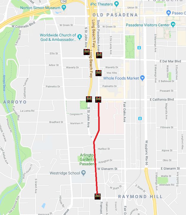 Orange Grove Blvd高速出口左转车道:周二晚上7:30至周三下午2点。