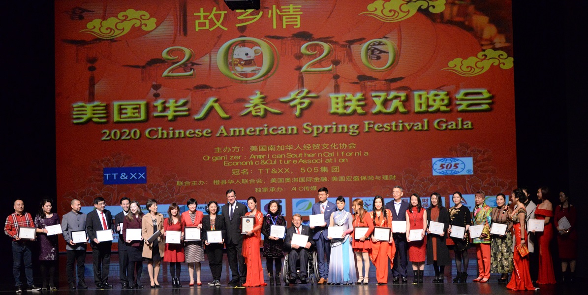 由美国南加州文化经贸协会联合橙县华人联合会主办的“2020美国南加华人春晚”,在新春佳节来临之际,为民众献上一台以“故乡情”为主题,洋溢着浓浓的“年味”、“侨味“、“中国味”的新春晚会盛宴。春晚由南加华人文化经贸协会会长黄冬平任总策划,王杰生任总导演,子函、林文汐担任主持。由AIC 传媒承办;橙县少林寺武堂、美国华人发展互助会协办。