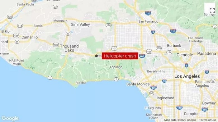 事故地点卡拉巴萨斯(Calabasas)在洛杉矶以西约30英里处。有雾的天气使直升机撞上卡拉巴萨斯的一座山上并起火。