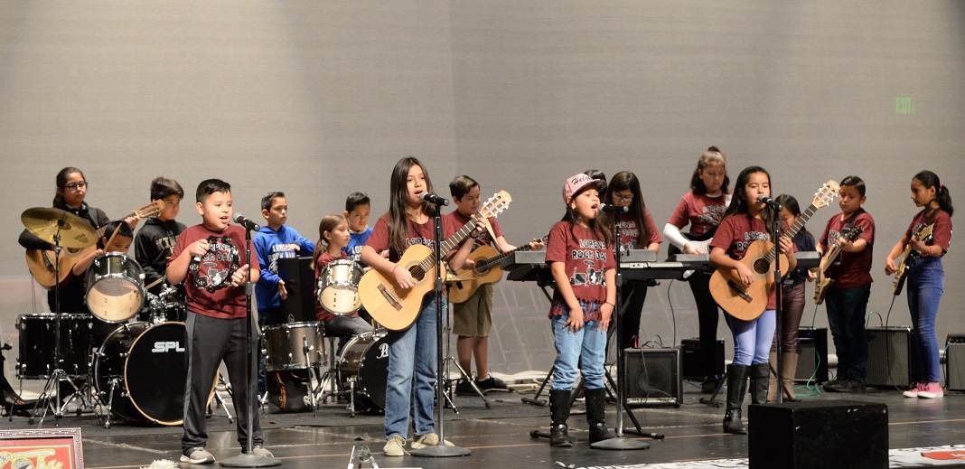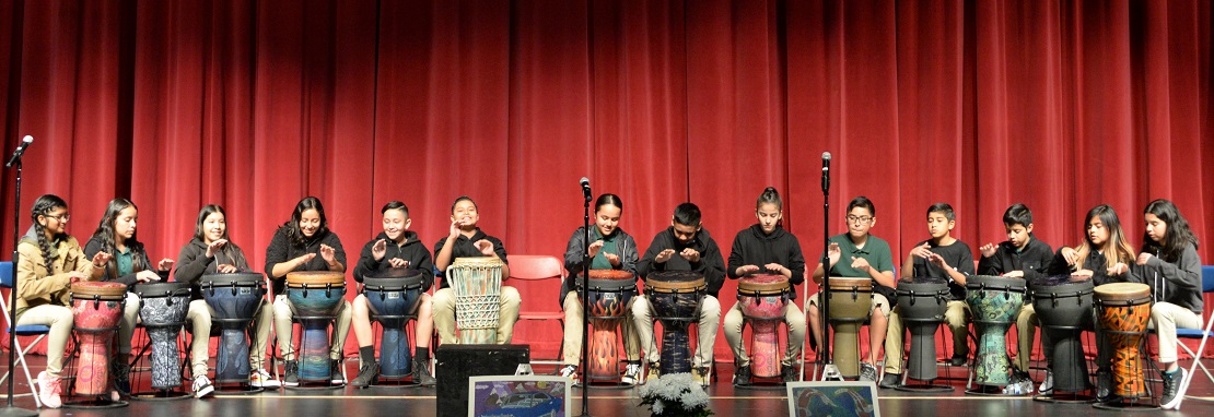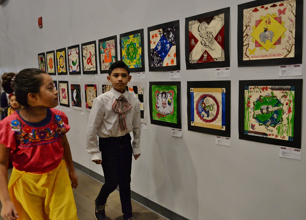 中国学生们的书画和手工艺品作品在活动现场进行展示,获得美国学生们的好奇和赞赏。“San Miguel Elementary School” 的学生们穿着中国唐装来参加演出,该校350多位学生接受中英文双语课程。