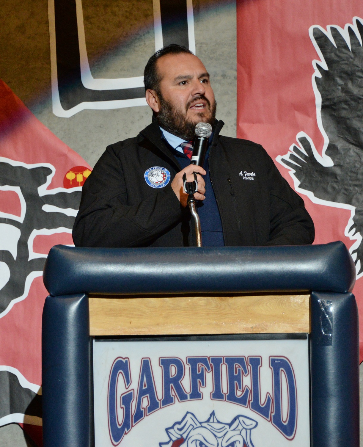 东洛杉矶联合学区总监Jose Huerta、 洛杉矶嘉惠尔高中校长(Principal of Garfield High School)Andres Favela以及老师代表出席了开幕式。他们致辞表示,中国农历新年是值得庆祝的好日子,在美国的孩子来庆祝中国新年很有意义。北京黄城根小学、北海外国语实验学校学生精选20多幅绘画作品展出,中美学生之间的交流很有意义。近几年来,两国学生分别从彼此身上学到很多东西,开阔了眼界,增强了对彼此国家和文化的认识,是很有效的教育交流平台。