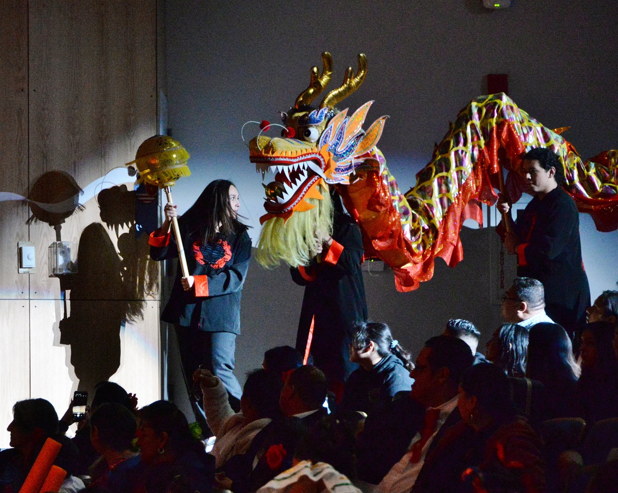 城市新闻2月3日洛杉矶市报导,2020年第八届中美青少年文化艺术节在洛杉矶嘉惠尔高中(Garfield High School)礼堂盛大开幕,数百名各族裔学生共聚一堂,分别带来精彩文艺演出,用艺术共庆中国农历新年到来,学生们舞起一绦金色巨龙在礼堂内飞舞,赢得阵阵掌声。