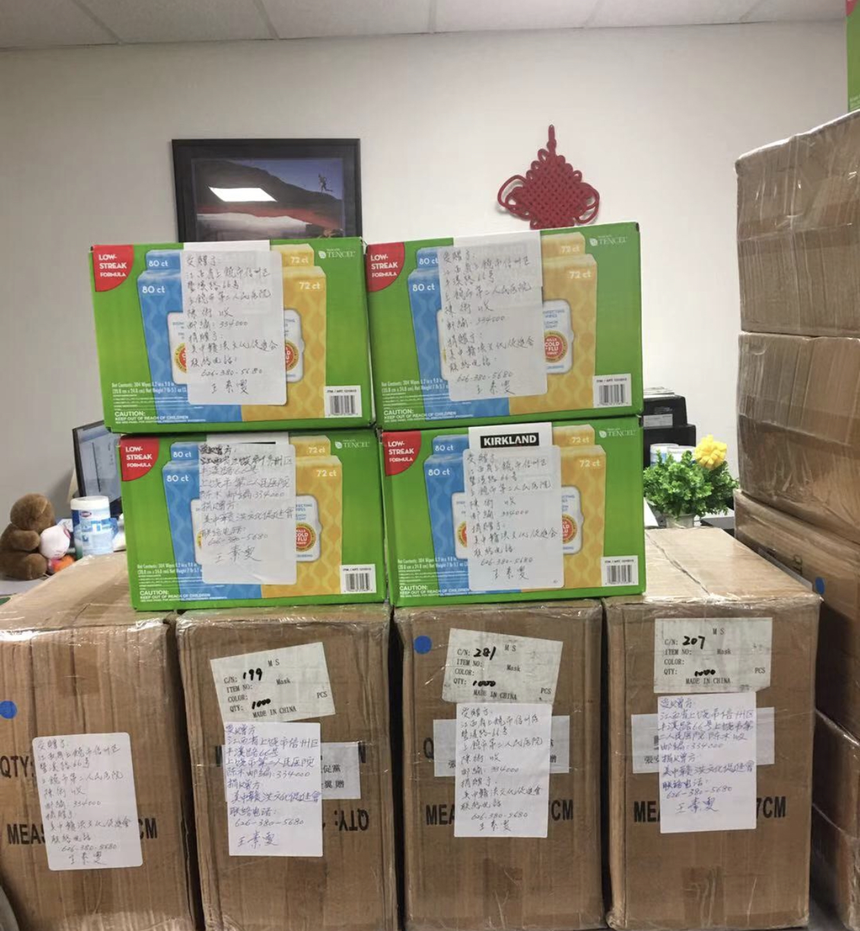 一方有难,八方支援,当我接到江西省外办汪敏处长告知江西上饶市第二人民医院求助急需N95医生用口罩时,我四处奔波寻找货源,此刻得到众多台胞们的支援捐赠防护用品给我们会,收到台胞的捐赠今天2月10日通过美国飞洋快递绿色通道第一时间运往江西上饶市第二人民医院,老前辈江西老乡徐和生也赶过来送上捐款 第一批防护用品本月10日将送出门。