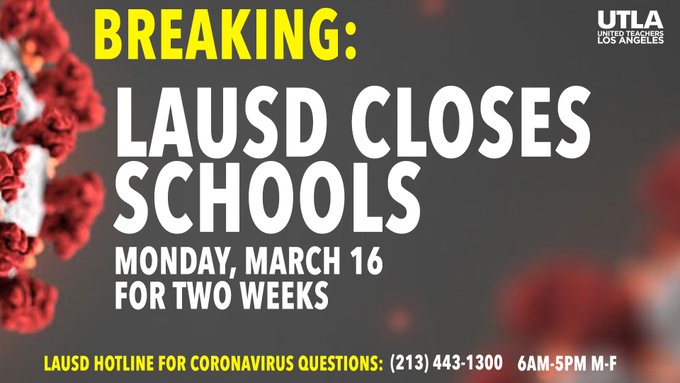 洛杉矶联合学区总监奥斯汀·博特纳(Austin Beutner)和圣地亚哥联合学区总监辛迪·马丁(Cindy Martin)在一份联合声明中表示,加州已进入抗击新冠肺炎疫情的关键阶段:“有证据表明,疫情已经存在于学区所在的社区中,我们现在必须努力防止其继续蔓延。我们相信关闭加州这两个最大的学区将为抗击疫情做出重要贡献。”
