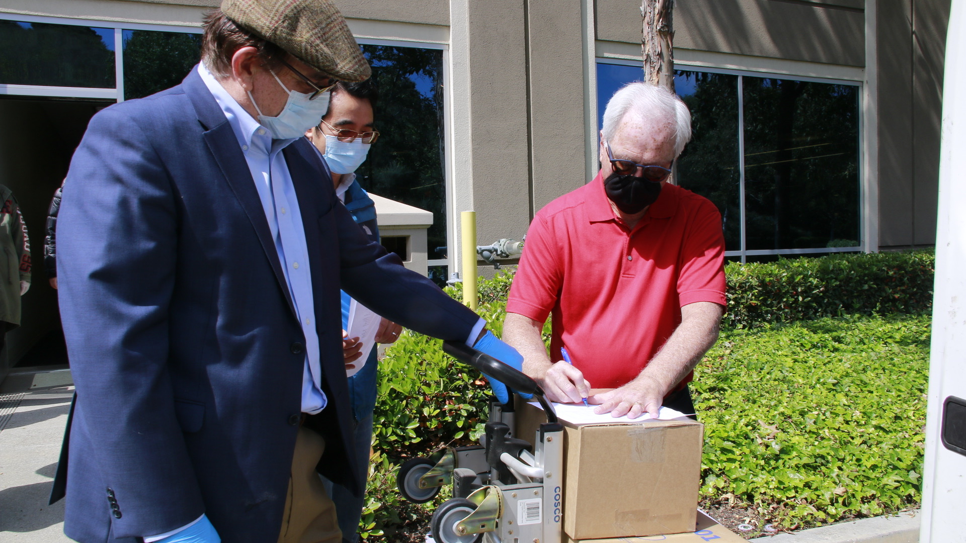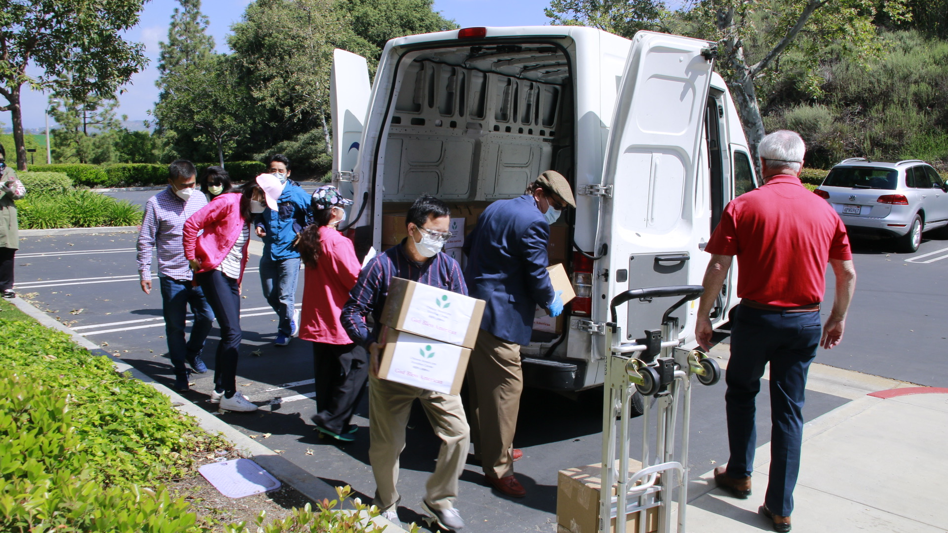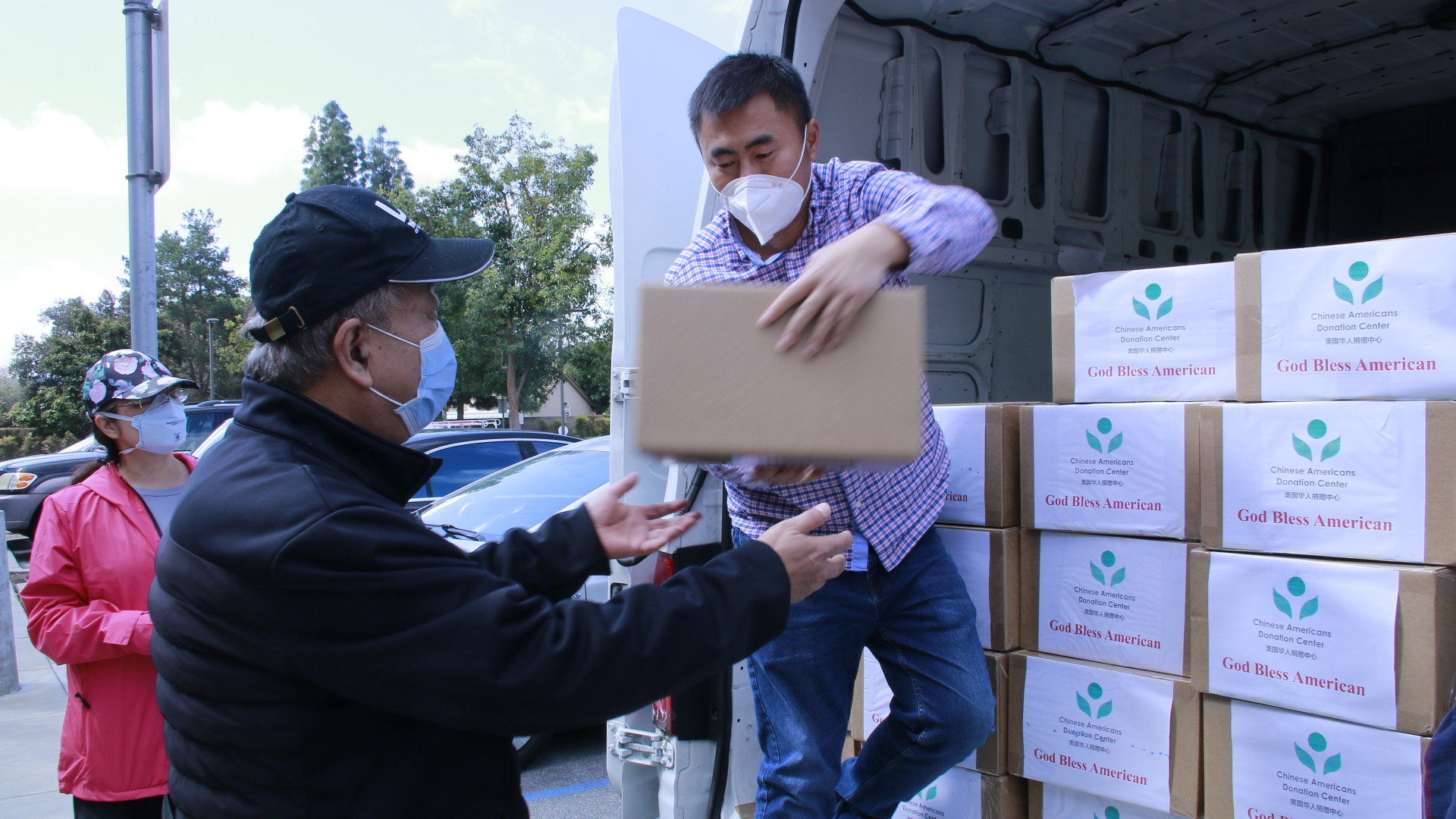 4月21日,美国华人捐赠中心的义工们来到核桃市和钻石吧市,向两个城市市府捐赠口罩和手套等物资,帮助市府抗击疫情。钻石吧市市长Steve Tye、核桃市市议员伍立伦分别接受物资。前加州参议员夏乐伯及夫人何美湄、美中交流协会基金会主席林旭、义工Herry li等参加捐赠活动。