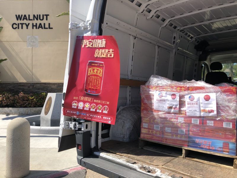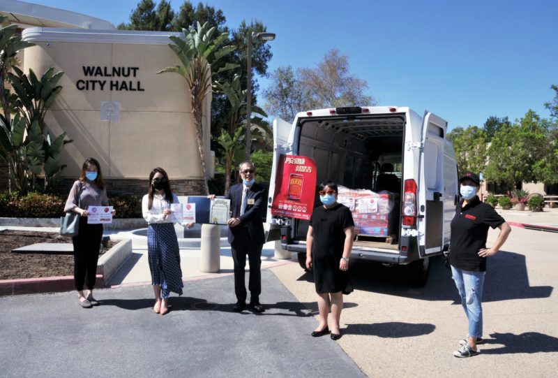 核桃市市议员伍立伦感谢美国华源食品、广州王老吉药业股份有限公司对政府机构的支持,赞誉华人在疫情期间团结一心的精神,并鼓励所有华人在疫情期间团结一致,打好抗疫战争。