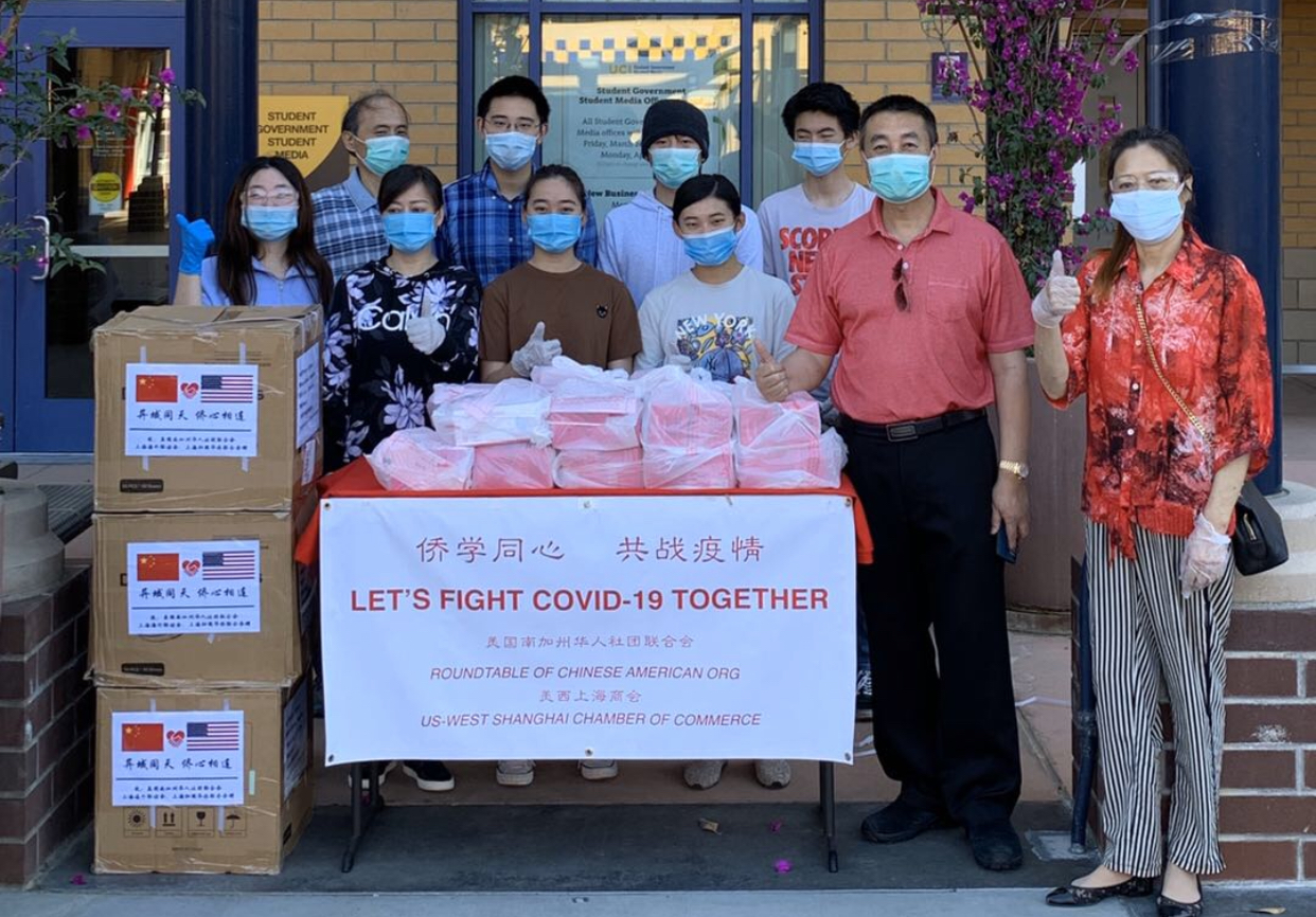 5月2日,正值学校期中考试,美西上海商会的骨干们鹿强,沈丽玉,方蕾,JACK牛等来到UNIVERSITY OF CALIFORNIA, IRVINE, 为留守在学校的以上海籍为主的留学生发放健康包,送上上海侨联的慰问信,并为同学们带去可口的上海滩爱心便当。