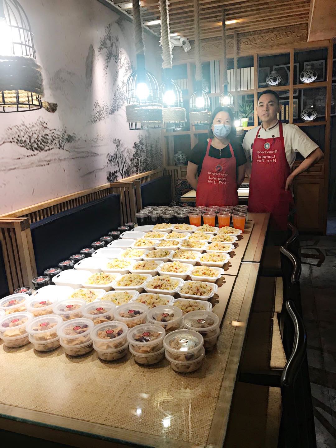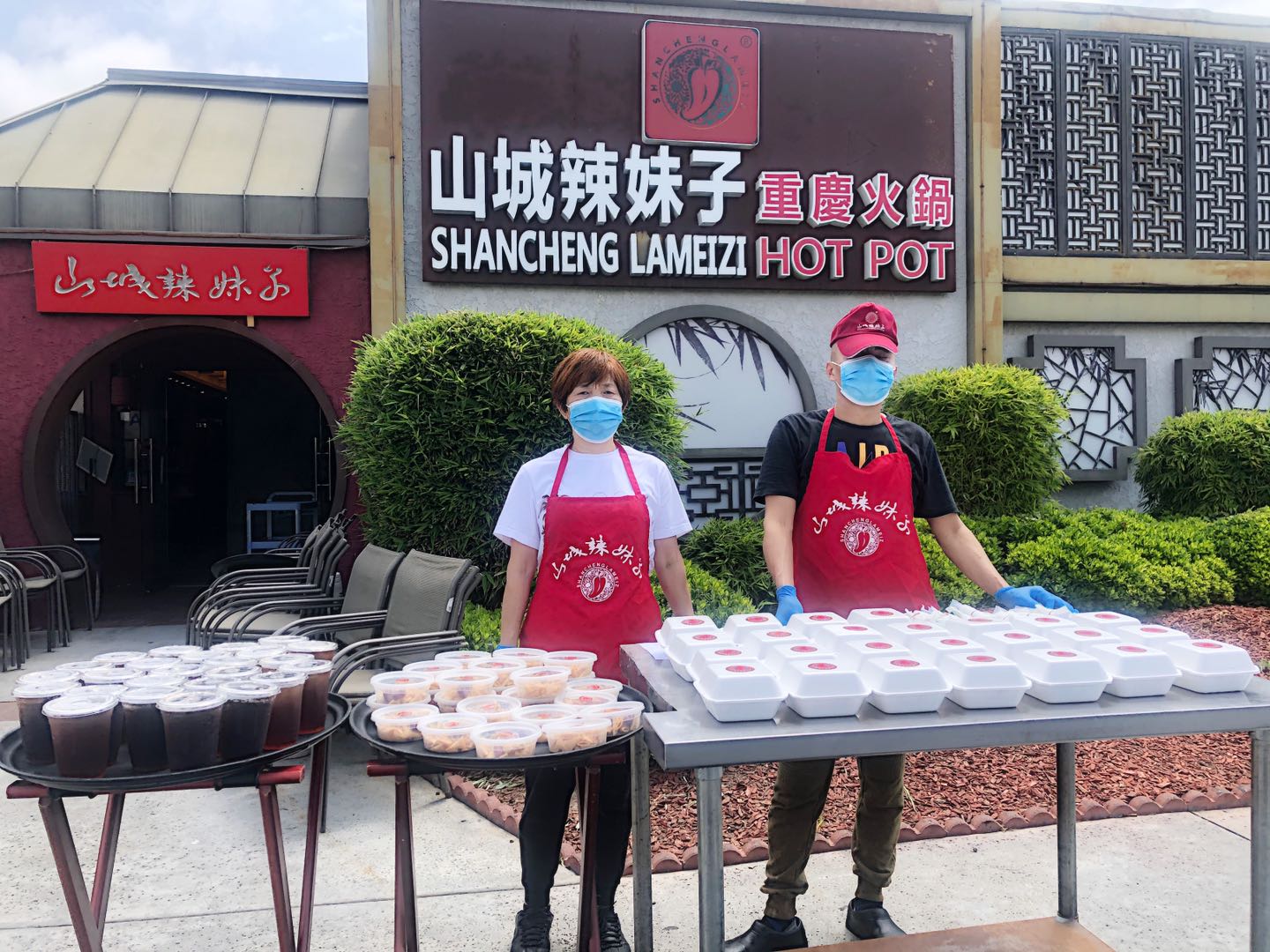 美国川渝总商会理事单位山城辣妹子火锅店和麻省理工餐厅不仅是洛杉矶餐饮品牌,还积极投入各项公益活动,得到陈慧碧会长赏识与支持。山城辣妹子餐厅董事长魏冬梅、总经理唐红梅与员工一起把香喷喷炒饭打包装盒,并送上一杯杯清凉可口的饮料,为警消人员、医务人员鼓劲打气,团结一心,抗击疫情,共克艰难,度过难关。