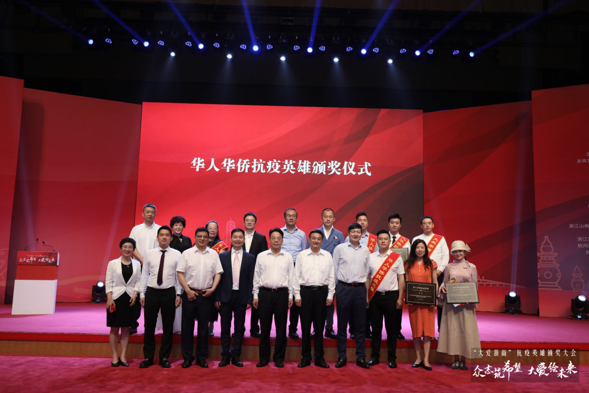 城市新闻5月15日据全美浙江总商会消息,浙江省侨联主席连小敏向全美浙江总商会会长林光、美国洛杉矶温州商会执行会长许旭升颁发 “华人华侨抗疫英雄”牌匾。“众志筑希望、大爱绘未来-‘大爱浙商’抗疫英雄颁奖大会”在浙江省人民大会堂隆重举行,大会由浙江日报报业集团、浙商发展研究院(浙商智库)、浙江省工商联、浙江省侨联、浙江省科协指导,《浙商》杂志、世界浙商网、《浙商》全国理事会主办。今次活动旨在弘扬社会正能量,致敬抗疫战场上的先进团体和个人,激励海内外浙商继续奋进,进一步助力海内外抗疫。阿里巴巴、吉利集团、海亮集团、娃哈哈集团等企业和组织入选“浙商抗疫英雄榜”。