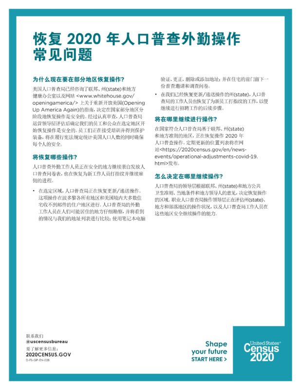 美国人口统计工作人员 | 2020 年 5 月 13 日