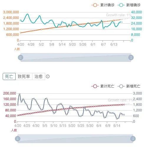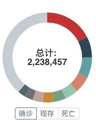 截至6月18日(周四)傍晚7时,根据美国疾病控制与预防中心(CDC)和各州及地方政府发布的消息,美国新冠肺炎确诊病例已达2,238,457例,死亡120,342例,治愈699,547例,当日新增25,819例。