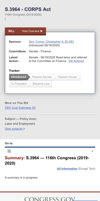 根据参议员克里斯·库恩斯(Chris Coons)的说法,国会目前遵循的额外援助方针是将其援助用于受灾严重的群体。他提到该法案是“广泛的党派”(这意味着该法案已与民主党和共和党双方达成一致)。他说:“这将使当地非营利组织可用于启动新的和扩展的计划的数量增加一倍,以帮助我们从经济衰退中恢复过来。我们已经有超过4000万美国人申请失业了。”