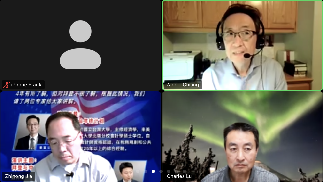 美中和平友好促进会主席张素久感谢两位主讲人的精彩讲解,收获很多。并表示,当下,拜登当选首要任务是控制美国的疫情以及恢复经济,期待拜登成为有担当的总统。