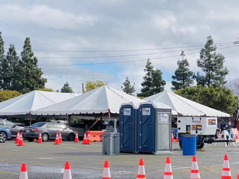 接种疫苗的地点为民众贴心准备了移动厕所和洗手池。
