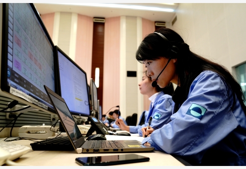 2月10日,上海天文台VLBI深空探测指挥控制中心的测控员在工作中。