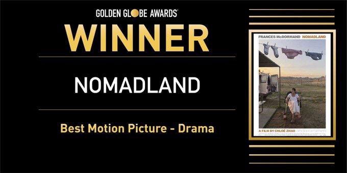 2021年78届金球奖今晚举行线上颁奖礼,截至发稿,中国导演赵婷凭借她的电影《无依之地》获得最佳导演奖项,她是史上首位获得金球奖最佳导演的亚裔女性。同时,该片又获得了最佳影片奖。