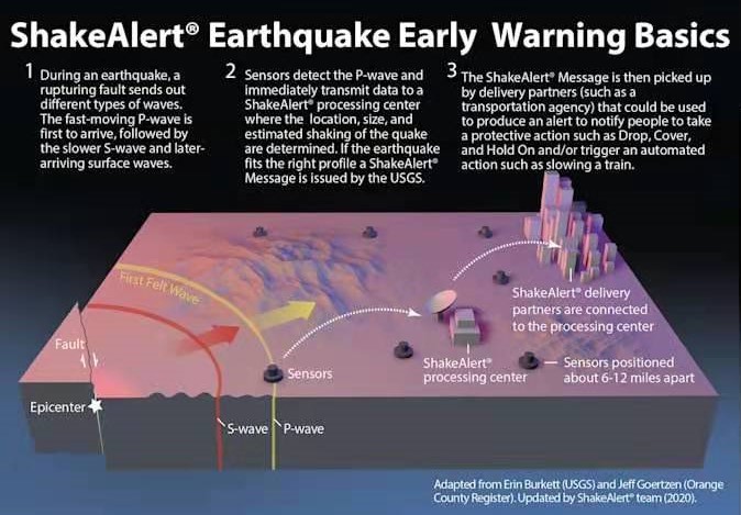 该系统之所以能够工作,是因为当今的无线通信速度要比震波在地下传播的速度快得多。“现在,这三个州都将向手机发送地震警报,”美国地质调查局地震科学家,ShakeAlert预警系统的通讯协调员罗伯特·德格鲁特说。因此,如果居民得到警报,他们可能在地震波到达之前几秒钟或数十秒内完成蹬下、掩护、保持(drop, cover, hold on)逃生自保措施。