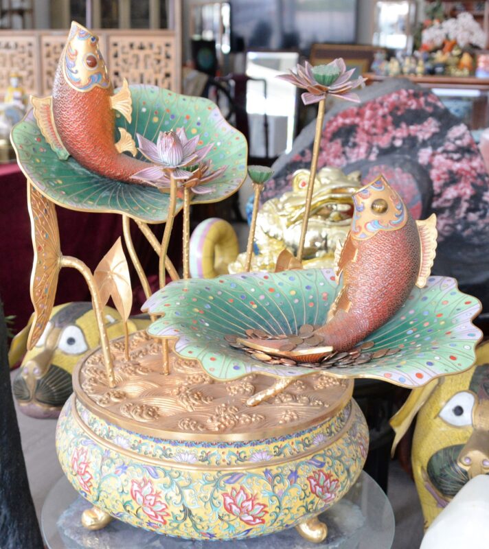 玉山庄古董珠宝还收藏国际大师李佩卿景泰蓝作品「鱼韵」,这件被称为国宝级景泰蓝,荣获美国、法国等2金1银1优秀等国际大奖,技惊欧美等五十余国。国际大师李佩卿是一百多年来唯一一位华人得到斯特拉斯堡「列宾竞赛」金奖的艺术大师,作品被各大博物馆收藏,并作为中华人民共和国指定的国宾礼。这件景泰蓝艺术品也是拍卖会的亮点之一。这是千载难逢的寻宝机会,欢迎珠宝古玩爱好者大家告诉大家,踊跃参加拍卖竞标,拍卖热线:626-838-8881
