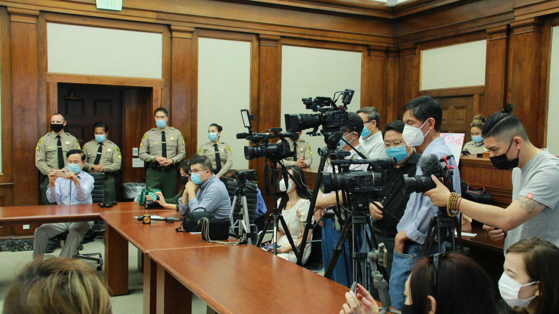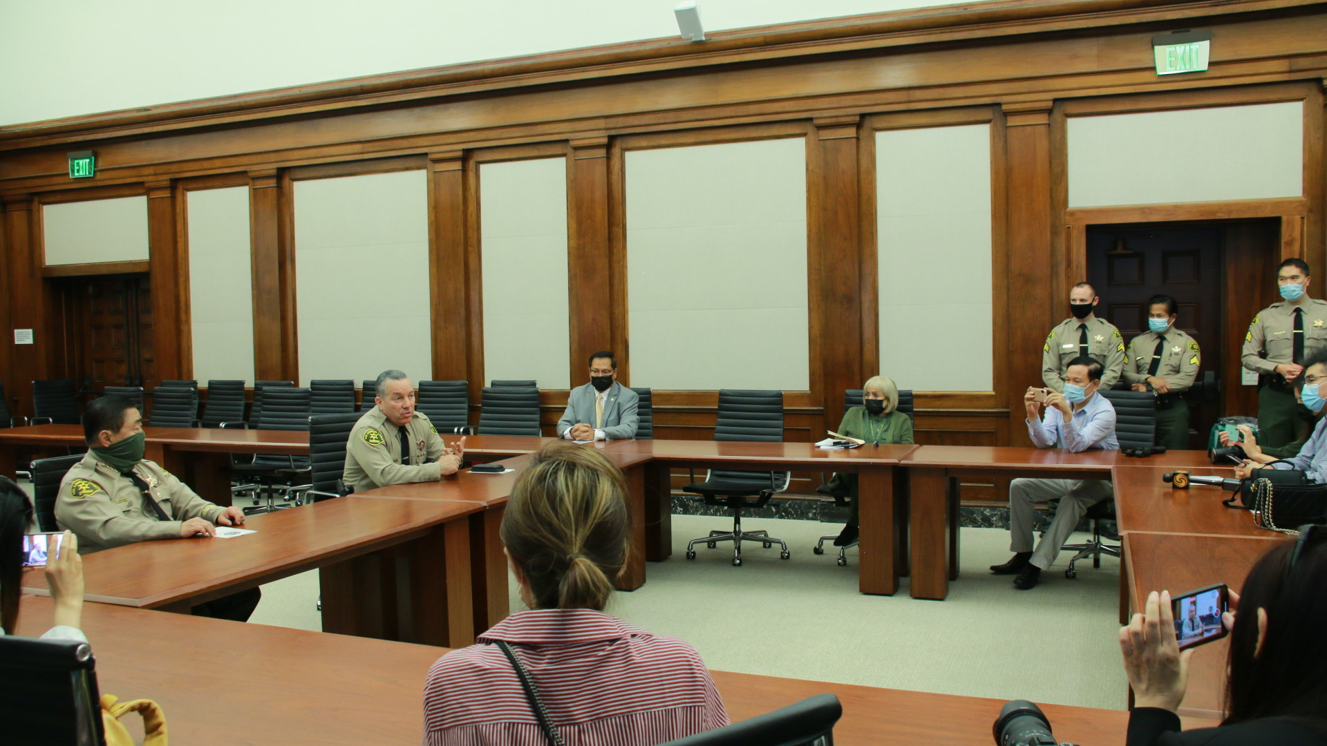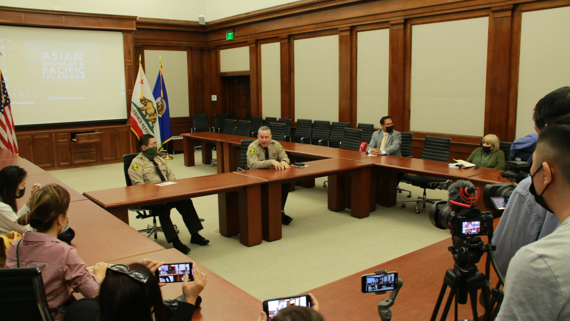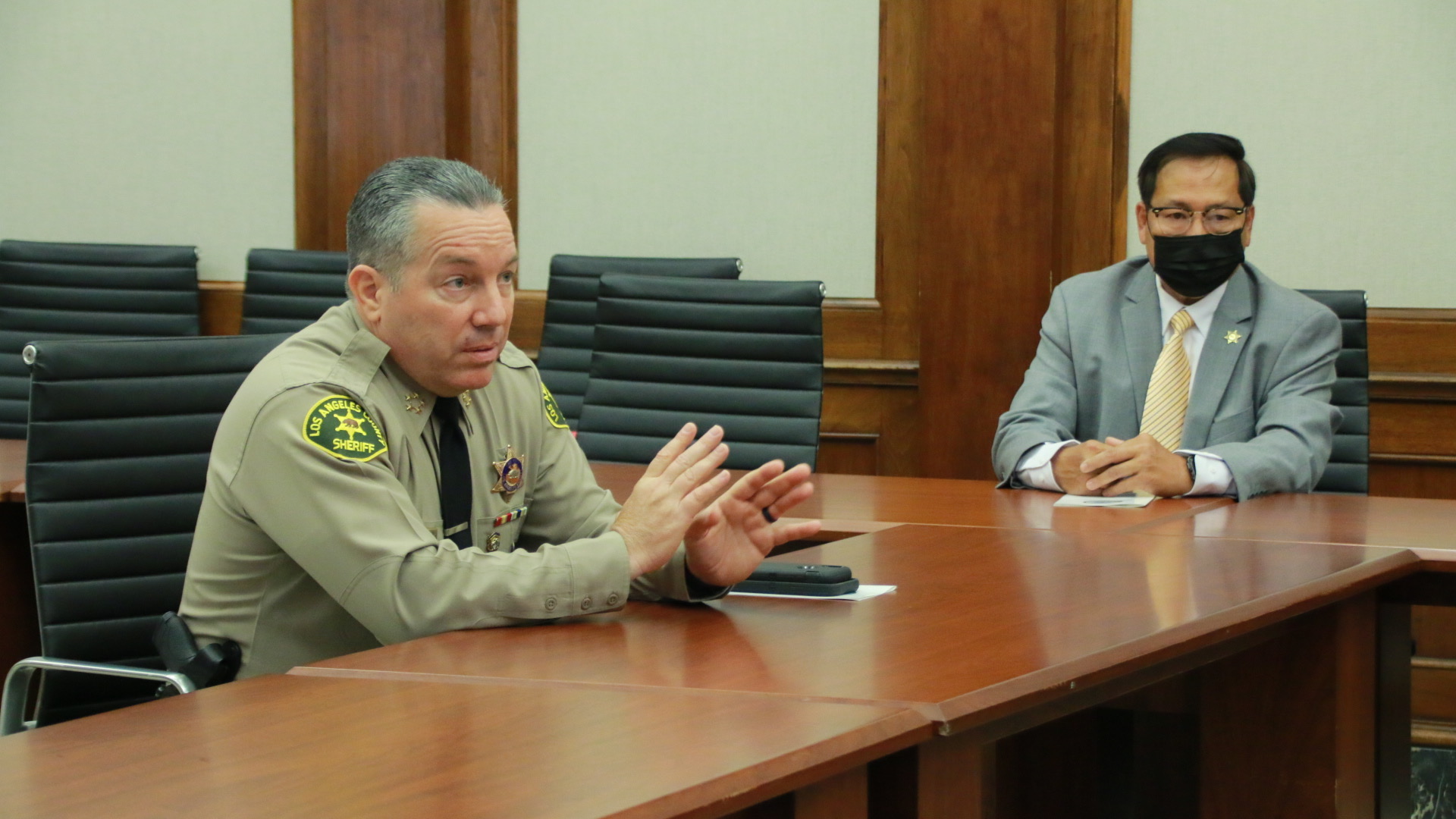 当地时间5月26日,洛杉矶郡警察局局长亚历克斯·维拉纽瓦(Alex Villanueva)带领洛杉矶警察局举办中文媒体信息研讨会,就各个方面进行介绍。
