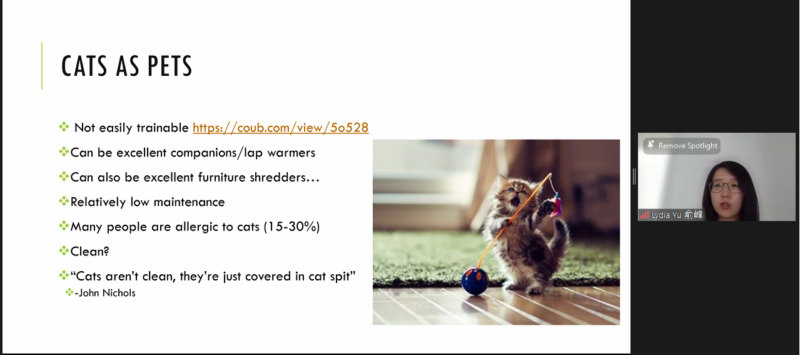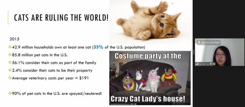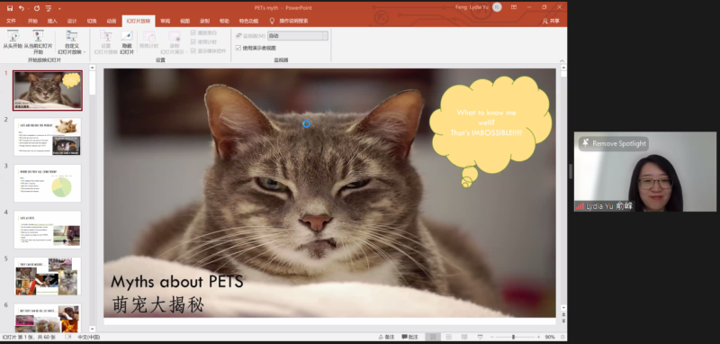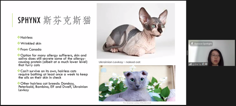 随即,中国农业大学动物医学学院副教授,加州大学戴维斯分校临床兽医博士俞峰也做了中文主题演讲:“萌宠大揭秘 Everything you want to know about pets” 。