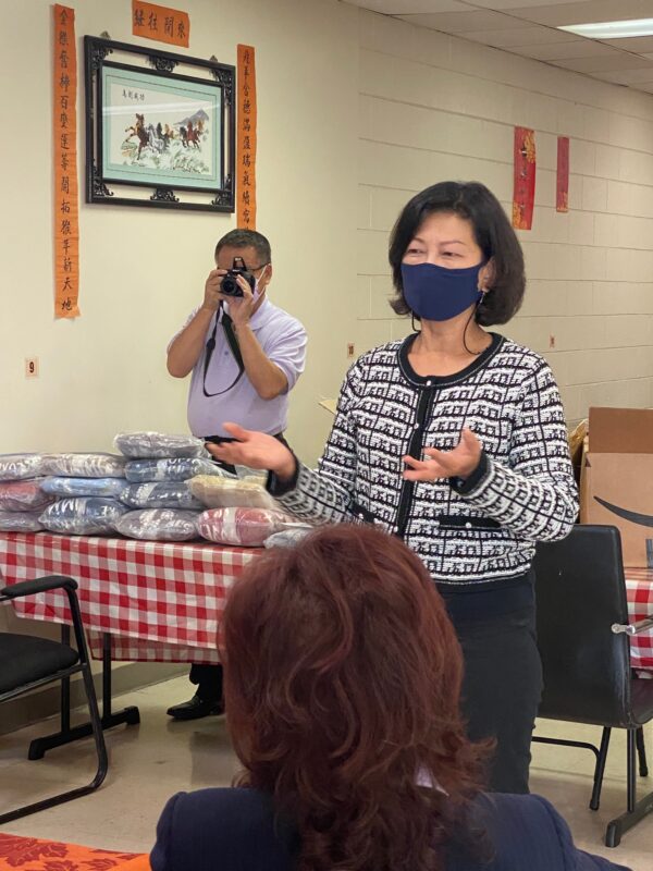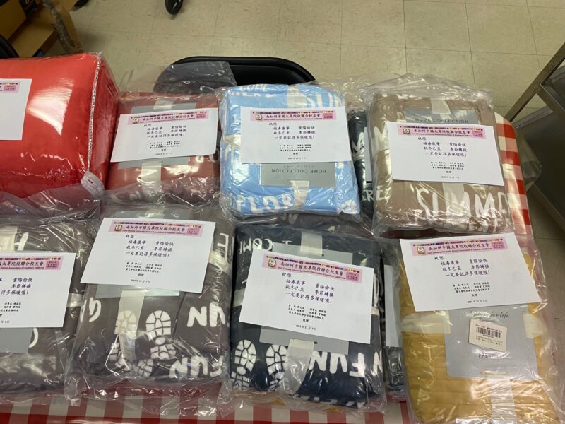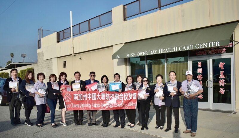 城市新闻11月9日洛杉矶报道,南加州中国大专院校联合校友会举行年度重阳敬老活动,会长郭文斌及理事长陈蓓蓓等十多名校友, 前往位于巴沙迪那的非营利组织「圣盖博谷日间保健中心」 致赠毛毯, 受到院长陈嘉玲接待. 陈院长首先感谢大专校友会在疫情期间不忘关怀老人, 回馈社会的善举, 她说很多老人家在院内或在家看电视休息时, 往往不知不觉就睡着了, 很容易受到风寒, 大专校友会致赠的毛毯轻巧保暖, 非常适合老人家在此秋冬交替季节使用.