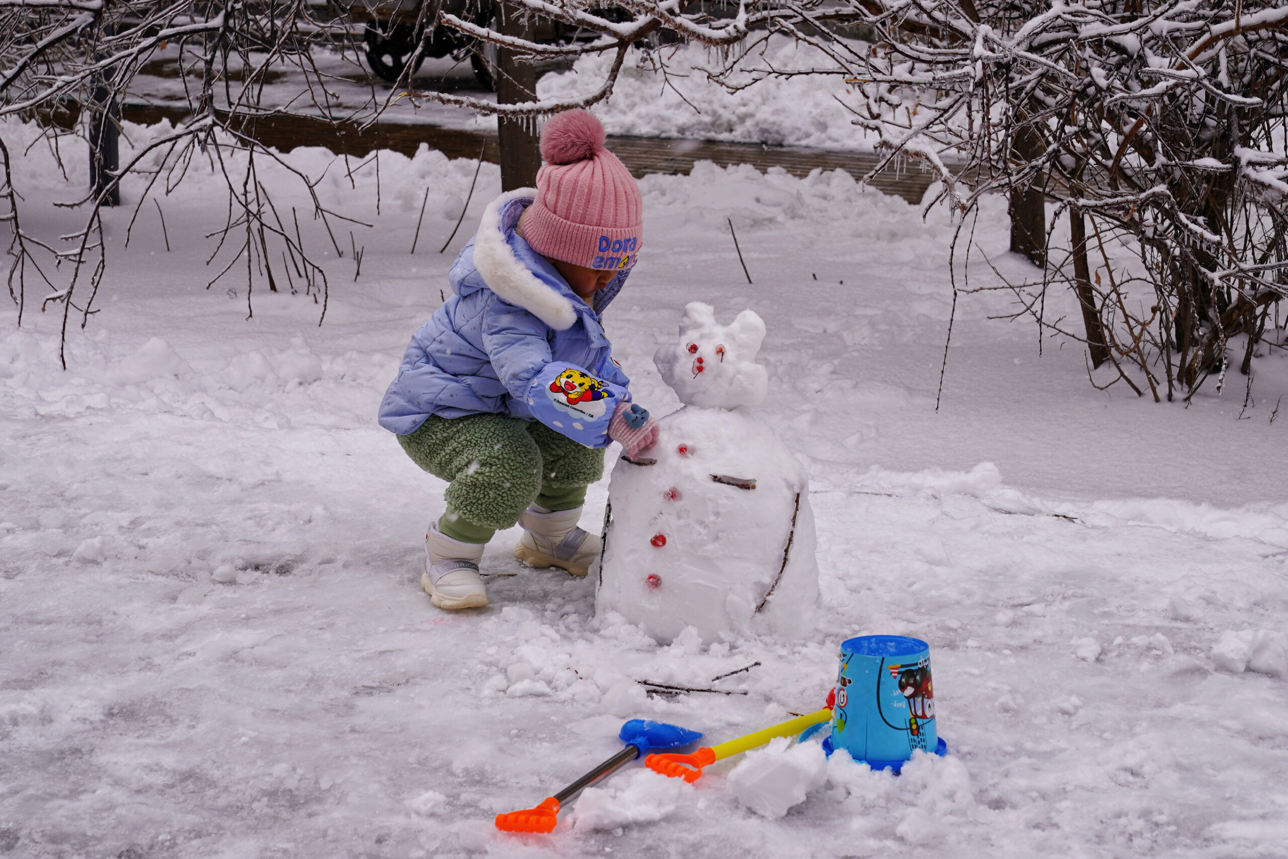 11月9日,哈尔滨市,孩子们在雪地里玩雪。近日,哈尔滨市降下了今年初冬的第一场大雪。