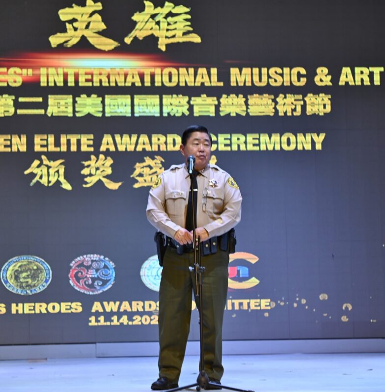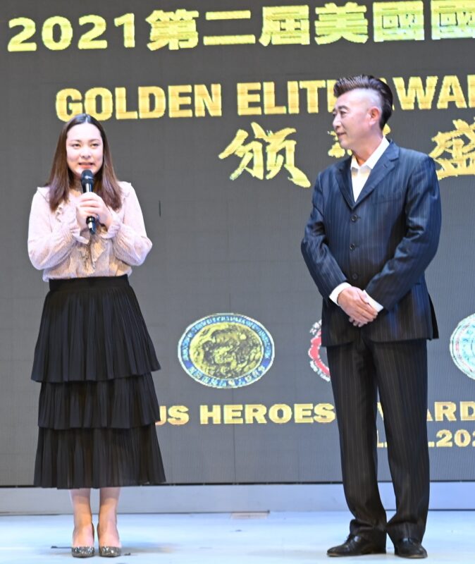 美国国会议员赵美心的代表市郑涵嫔、加州参议员苏珊· 鲁比欧的代表王爱琳、洛杉矶县警长艾力克斯· 维拉纽瓦的代表副警长Tim Murkami、加州失业就业局上诉委员会委员伍国庆向12位南加州华人社区领袖颁发美国英雄杯全球华人精英领袖奖;由12位南加州华人精英领袖向8位加州民选官员颁发美国英雄杯优秀华裔官员奖。