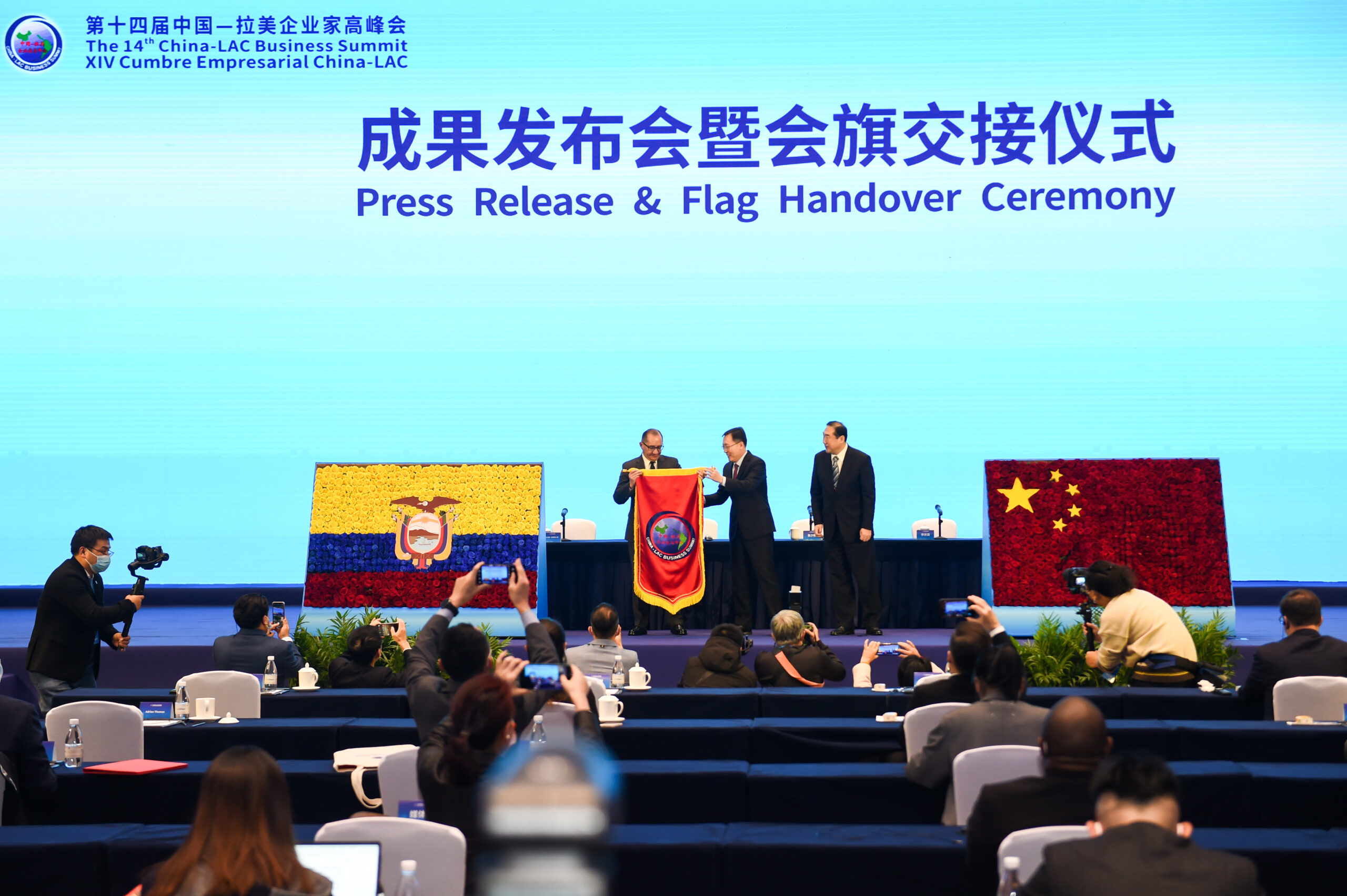 11月16日,在重庆举行的第十四届中国—拉美企业家高峰会举行成果发布会暨会旗交接仪式,厄瓜多尔瓜亚基尔将在2022年举办第十五届中国—拉美企业家高峰会。 未经允许不得转载:城市新闻网icitynews » 中国—拉美企业家高峰会举行会旗交接仪式