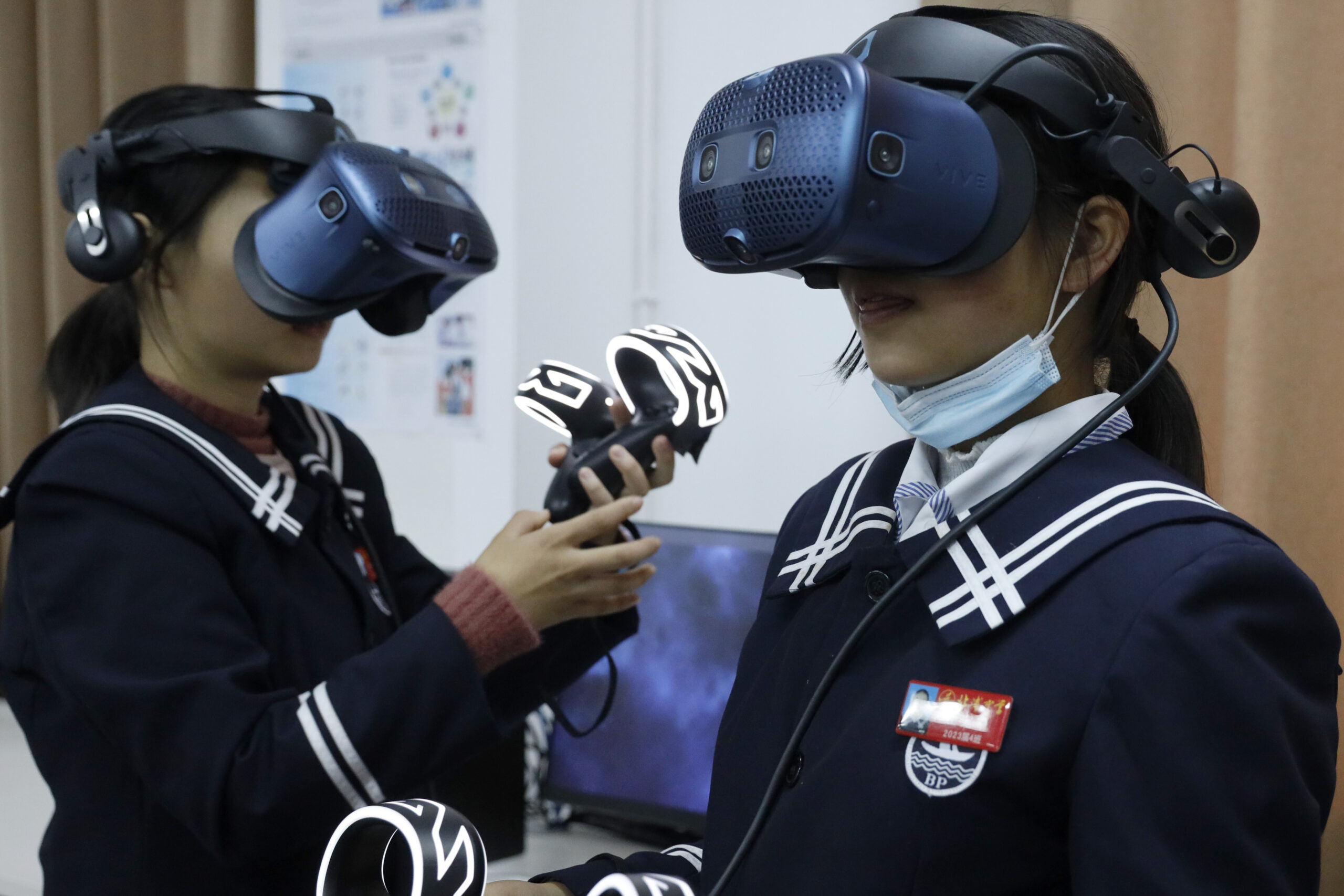 12月7日,学生使用VR设备。近年来,云南省楚雄彝族自治州楚雄北浦中学将VR沉浸式虚拟实验室引入日常课堂教学,学生通过VR沉浸式虚拟实验室完成物理、化学等试验,在保证试验安全的同时记录、分析学生的实验操作情况,对过程和结果进行汇总、分析,及时发现学生存在的薄弱环节,并针对性加强。