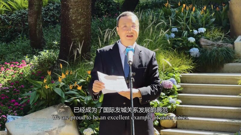 作为穗洛结好40周年系列庆祝活动之一,广州市政府于12月6日在越秀公园南秀园举办“广州—洛杉矶友谊花园”揭幕仪式。广州市副市长表示王焕清在发言的视频中表示:回首过去40年来,广州和洛杉矶两市人员往来日益密切,交流领域不断拓展,经贸合作持续深化,交流成果丰硕,友好情谊与日俱增,成为国际友城关系发展的典范。特别是去年新冠肺炎疫情发生后,两个城市相互交流、携手抗疫,生动诠释了守望相助的友城情谊。展望未来,我们相信,在双方的共同努力之下,两地的友谊将以今天为新的起点,迈入新的阶段,为推动构建人类命运共同体、实现两地人民对美好生活的向往作出新的贡献。祝福两市友谊地久天长。