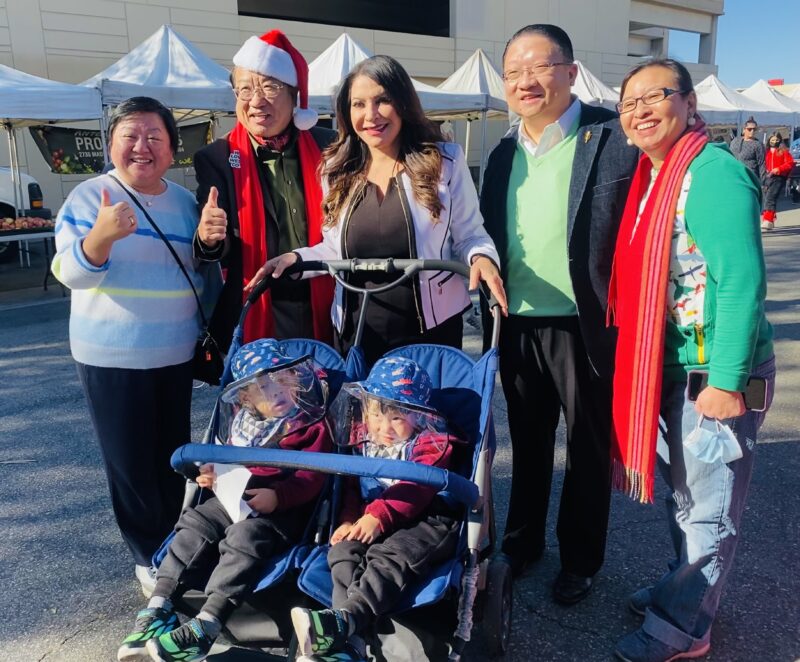 西柯文纳市市长达瑞欧·卡斯诺斯、华裔市议员吴桐淮、西柯文纳市华人协会会长苏彦韬、副会长林淑婷、监事长李惠琼、秘书长朱敬慈一起参与公益活动