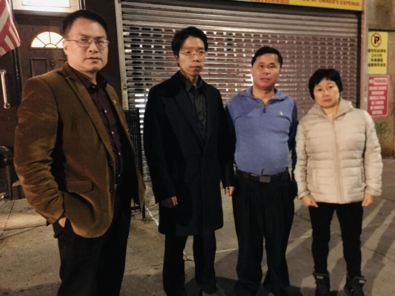 左起:美国城市新闻网驻纽约记者石泉、前纽约市议员候选人林煜、闽籍侨胞卢天发、卢天旺前妻