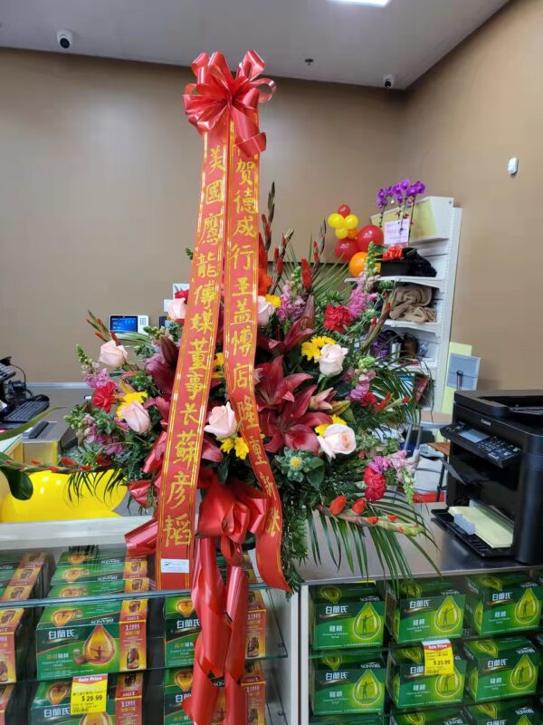 美国鹰龙传媒董事长苏彦韬、总经理林淑婷致赠花兰祝贺新张