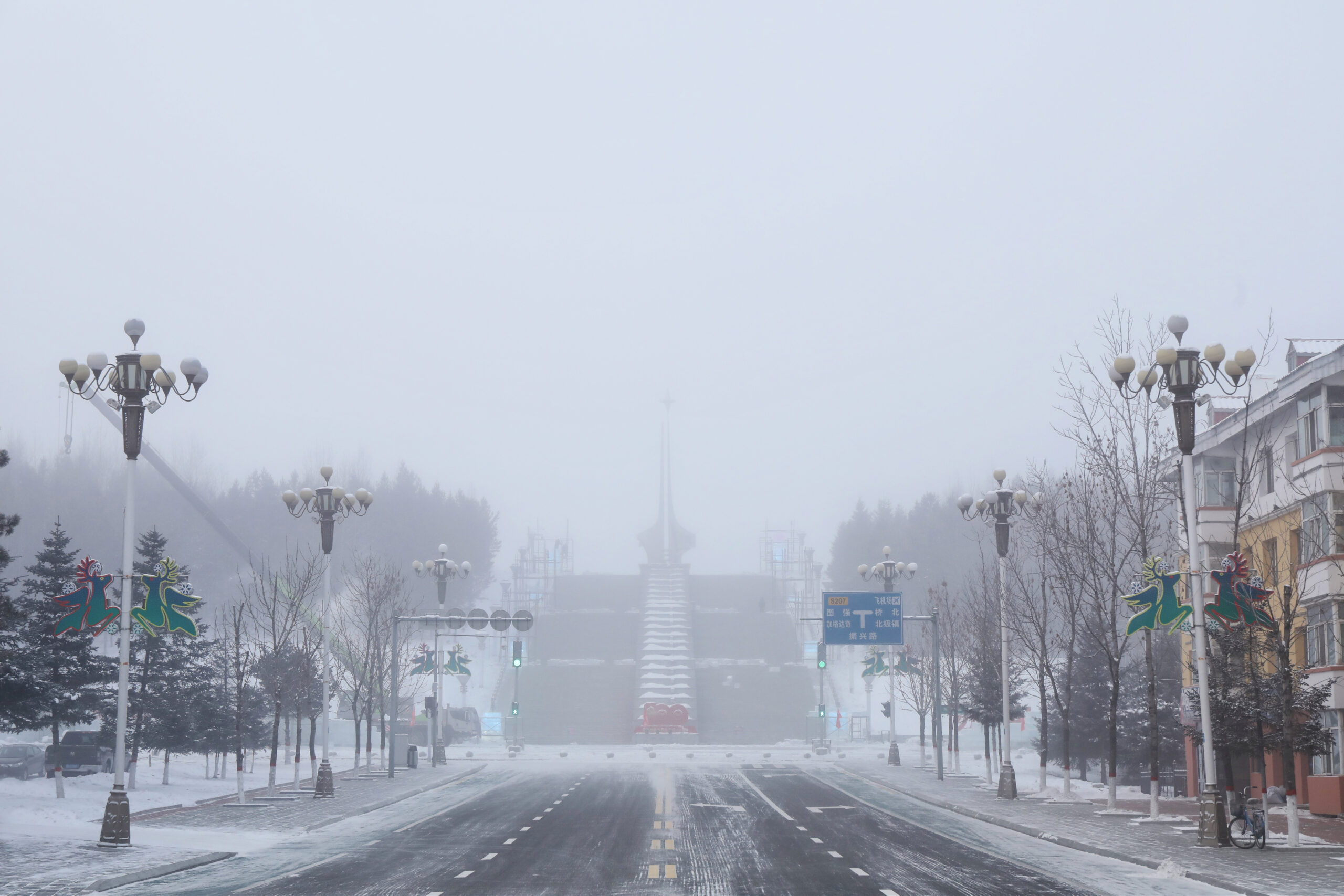 12月22日,黑龙江漠河,城区笼罩在白色冰雾中。受强冷空气影响,“神州北极”黑龙江省大兴安岭漠河市48小时内气温骤降19℃,22日最低气温降至-43.5℃,城区出现极端冰雾天气。