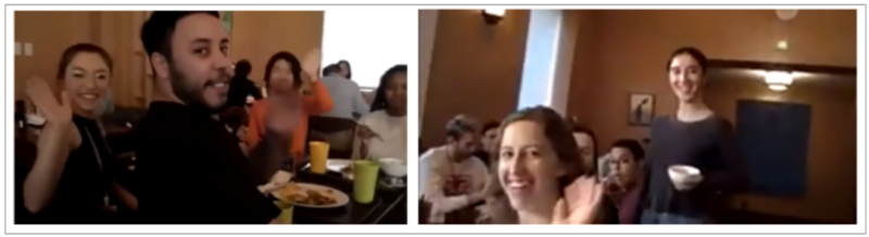 论坛时间很快就过去,原定一个半小时的论坛延长到了两小时十五分,大家仍然意犹未尽。此时在北京清华园已经是中午时间,潘庆中副院长在苏世民书院的餐厅里向大家”直播”,正在就餐的书院同学们纷纷招手致意!