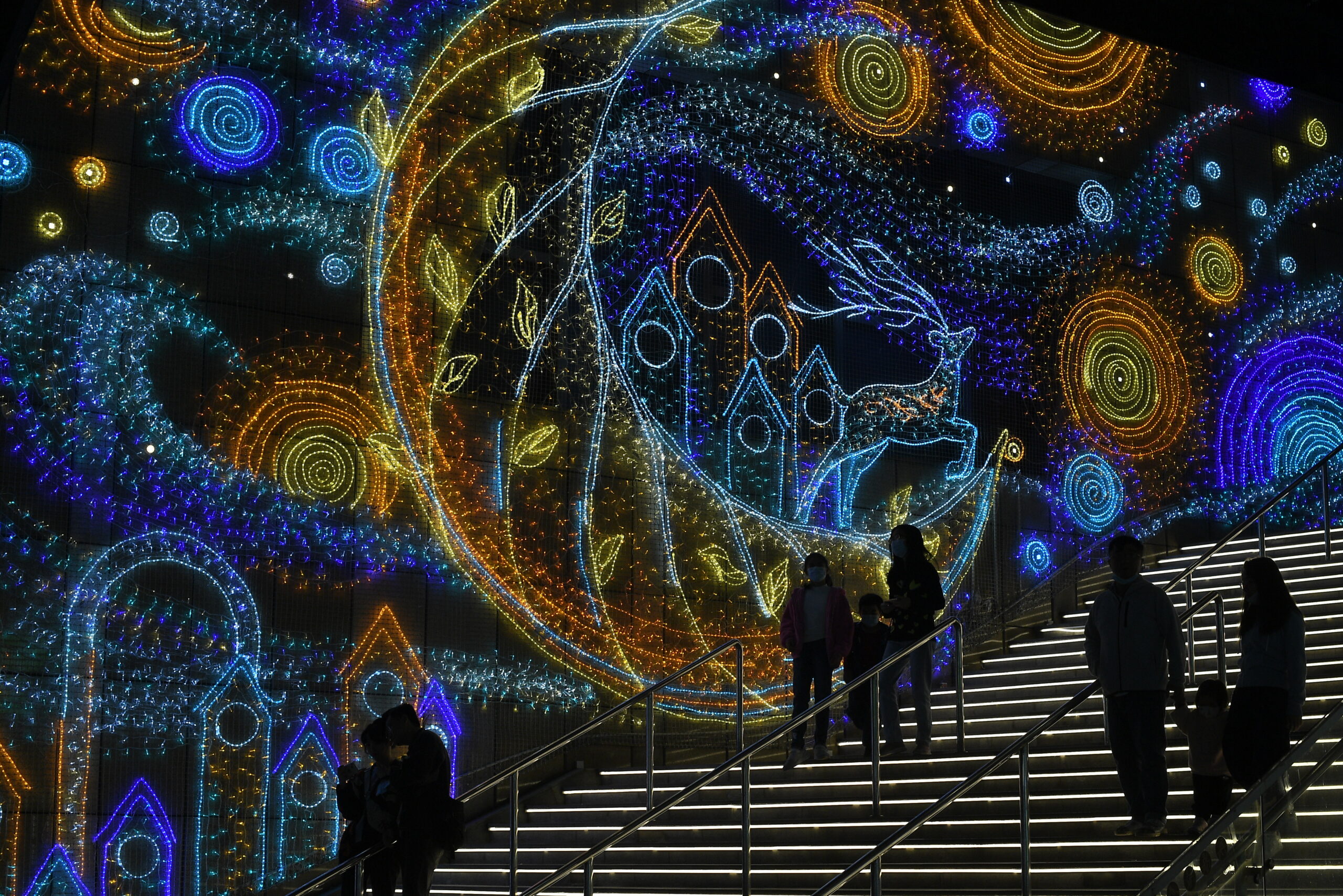 1月3日,广东省广州市,乐峰广场灯光展吸引民众驻足。
