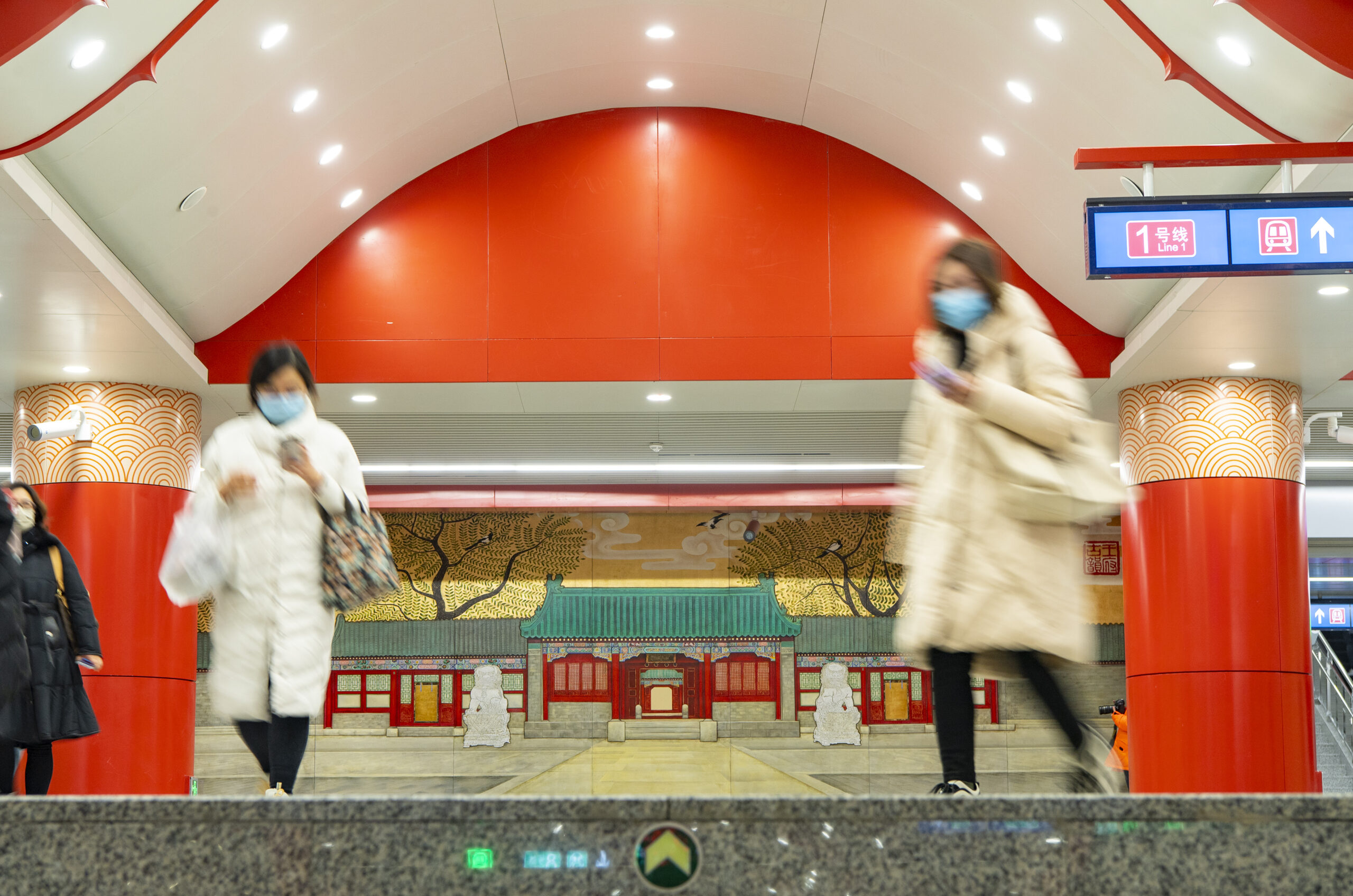 1月4日,市民经过北京地铁8号线王府井站换乘区域的主题装饰。王府井站是刚刚通车的8号线三期的站点之一,站内设计中国风浓郁。 未经允许不得转载:城市新闻网icitynews » 北京地铁8号线三期站内中国风浓郁
