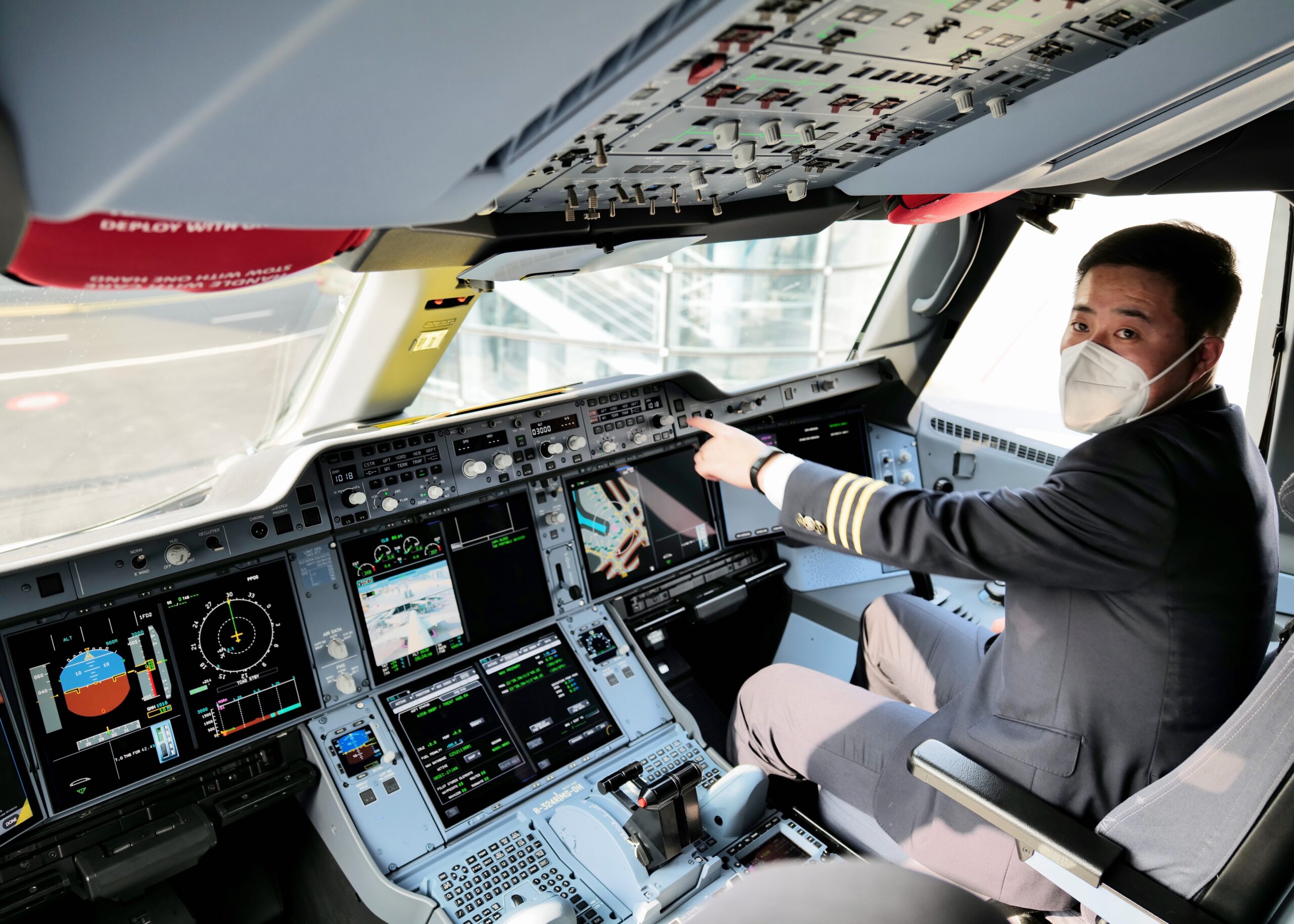 1月6日,广东省深圳市,南航两架全新大型远程宽体A350-900型客机同时落户深圳,加盟南航深圳分公司,深圳迎来目前最大空客宽体客机。图为大型远程宽体A350-900型客机驾驶舱。