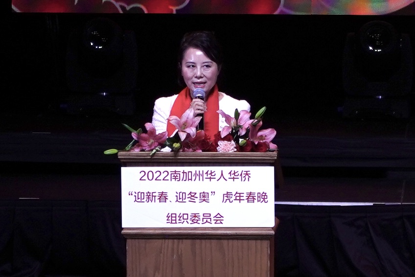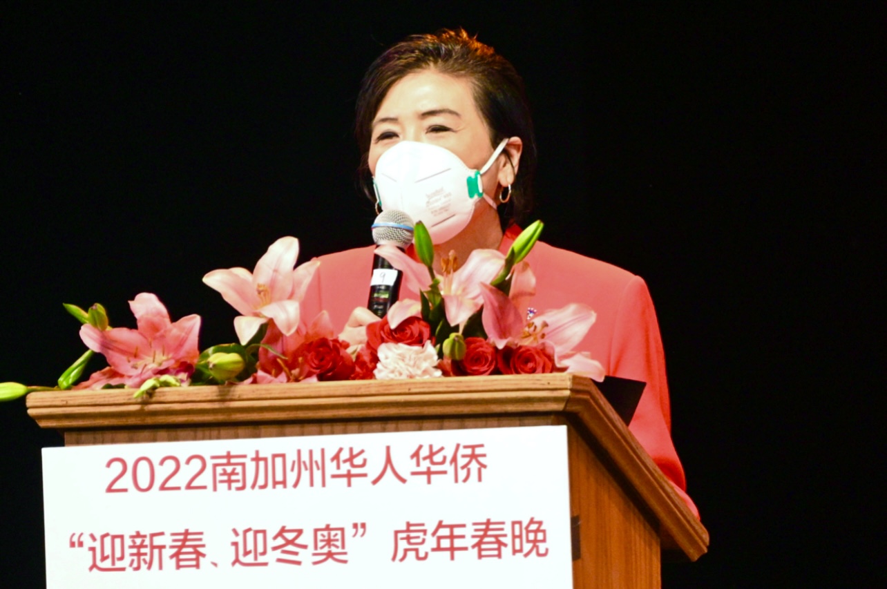 陈慧碧表示,2022年北京冬奥会、冬残奥会也将拉开帷幕。近段时间以来,南加州的侨团举办了各式各样的迎新春庆冬奥活动,表达我们在美华人华侨的喜悦、心愿和骄傲。希望今晚几百人精心打造的演出能给在坐的1000多名观众带来一场艺术盛宴、精神鼓舞和新年好运。预祝北京冬奥会取得圆满成功,祝包括中国、美国运动员在内的各国运动健将频传佳讯;祝大家虎年吉祥,幸福安康,在新的一年重振虎威,战胜疫情,龙腾虎跃。
