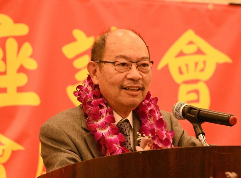 侨界新年座谈会召集人、美国美亚国际总商会会长陈鸿奕致词