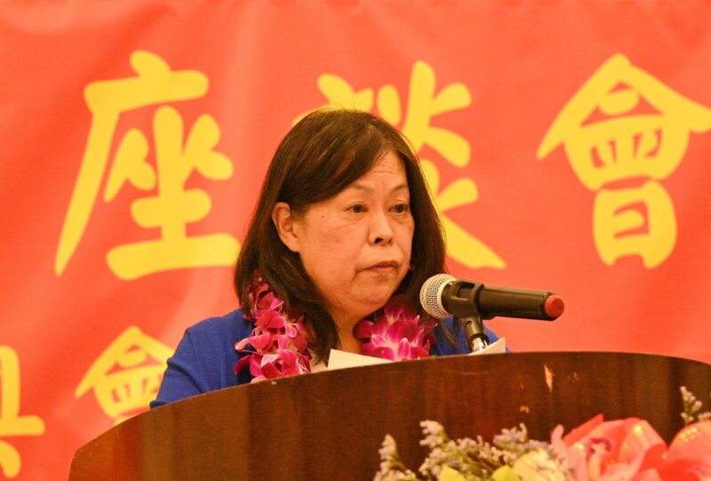 侨界新年座谈会召集人、洛杉矶华人华侨联谊会创会主席马树荣致词
