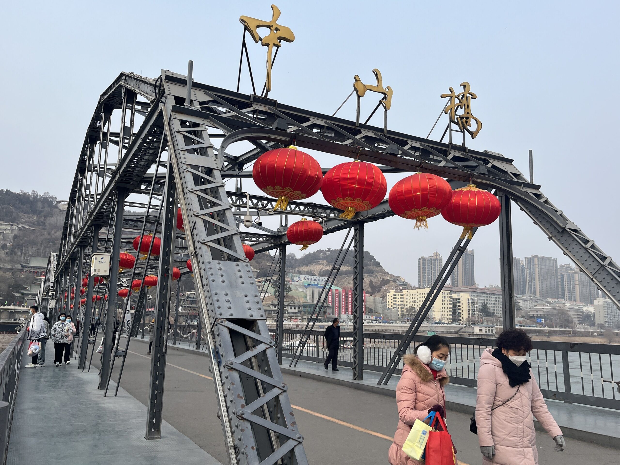 兰州中山桥张灯结彩迎新春