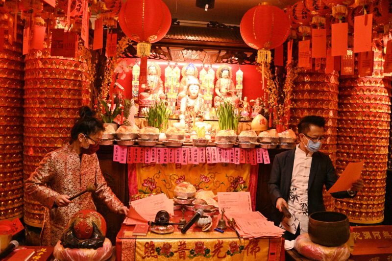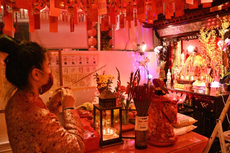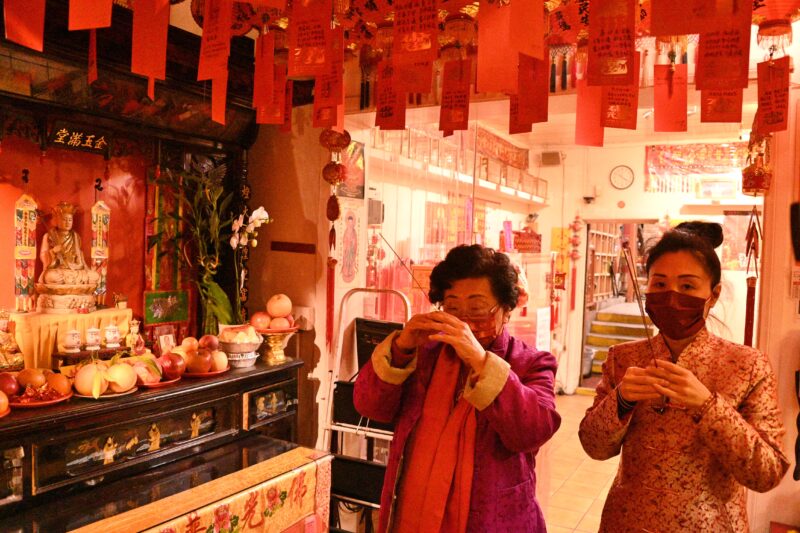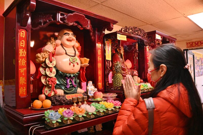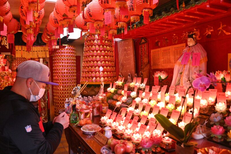 亚裔移民大多数来自中国大陆、台湾、香港、澳门、越南、柬埔寨、寮国、菲律宾等地,当中的华裔深受中华文化习俗影响,每逢过农历新年,都会到庙宇上香祈福,保佑全家平安。今年农历大年初一虽然是星期二,但前往寺庙参拜的善信依然络绎不绝,大家穿上传统服饰,戴上口罩,遵守防疫措施,喜气洋洋去拜神。