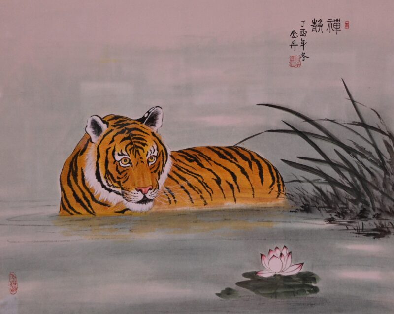 画家何念丹擅于画虎,他的「虎到福到」系列虎画作品曾获加州彩券局(California Lottery)选用为1998虎年年历海报。也曾作为虎年邮政首日封及虎年月历。